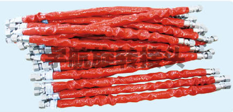 为了满足产品的使用条件,在外面增加了一层玻璃纤维硅胶保护套,以高膨松性玻璃纤维之套管所制成,并覆以厚实的氧化铁红硅胶,其能阻挡熔铁喷溅,且不受高温和火焰所损坏,这些特性其适用于保护恶劣环境下的软管、缆线和管路。可连续暴露于260度的高温中而不受损坏,在高达1090度温度不可承受15~20分钟,1650度的高温下则可承受15-30秒。