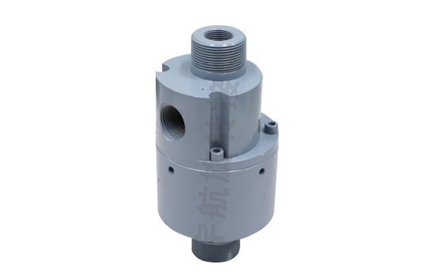 旋转接头的结构主要包括支撑的外壳、中心轴、旋转件与固定件。旋转部分与转子同步旋转,而固定部分不旋转,流体通过中心轴输
